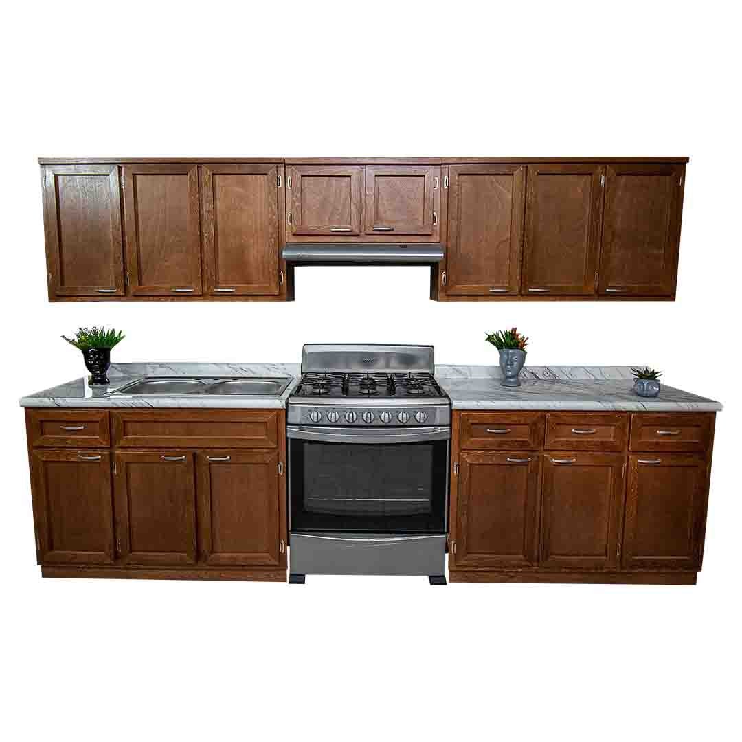 Cocina modelo Boston estilo clásico, con medida de 3.20 Mts, de madera con recubrimientos en MDF, cubierta en melamina terminado mate corte cuadrado.