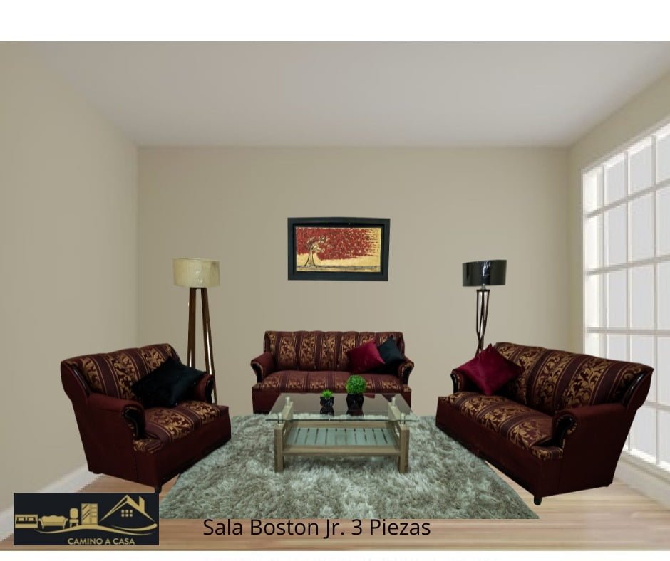 Sala 1, 2, 3; Se compone del sofá (para tres personas), loveseat (dos personas) y el sillón; las tres piezas están tapizadas en vinil con un relleno de hule espuma, por lo que son súper cómodos.
